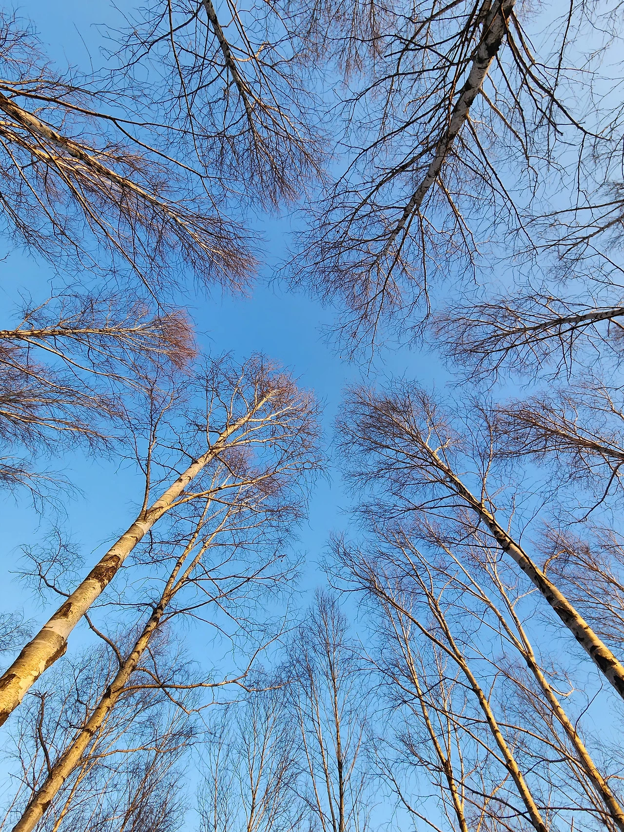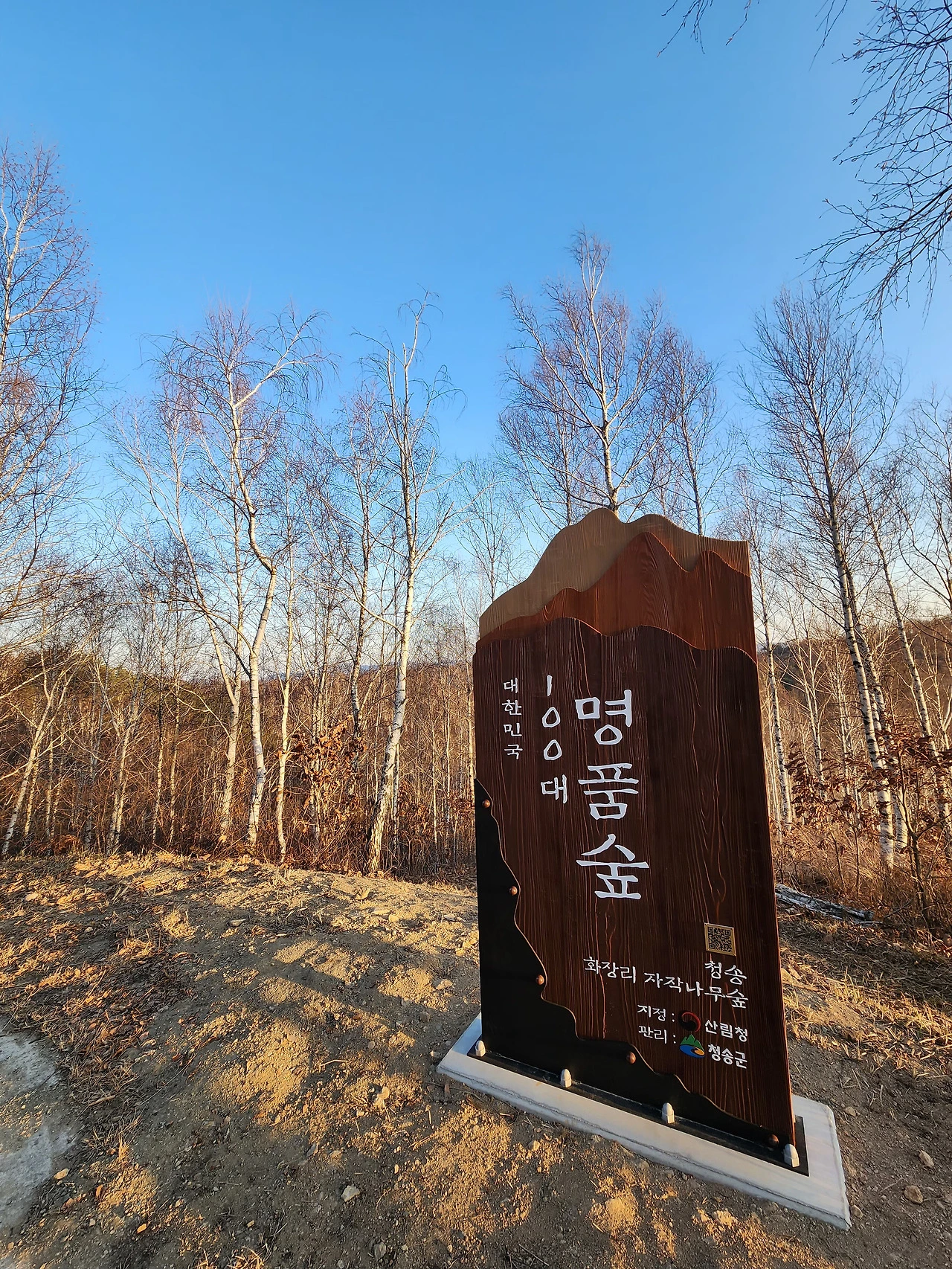얼음골부터 따라온 바람이 무포산 일대의 구름을 치웠는지 하늘이 잘 닦인 유리창처럼 맑았다. 숲에 닿기까지 따라다녔던 칼바람이 숨을 고르는지 숲 안에 들어서니 조용해졌다. ‘산림청 지정 대한민국 100대 명품숲, 청송 화장리 자작나무숲’이라는 이름에 걸맞은 곳이었다. 능선에도 골짜기에도 곧게 뻗은 자작나무가 빼곡하게 둘러있었다. 29년 전에 조성된 8.5ha의 드넓은 숲에 발걸음 소리만 바스락거렸다. 하늘을 받치고 선 자작나무의 아득한 우듬지를 올려다보았다. 찌르듯이 파란 하늘과 눈부시게 하얀 자작나무가 대비되어 청명한 빛이 쏟아졌다. 흐린 눈빛이 정화되면서 갑갑했던 가슴속이 살얼음 낀 동치미 국물을 마신 것처럼 시원해졌다.