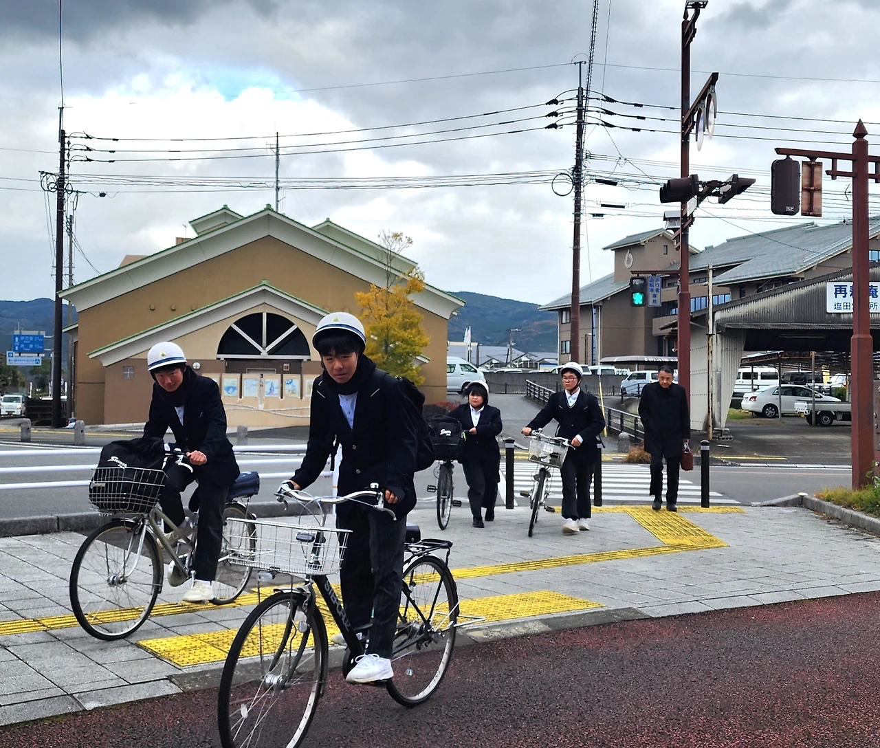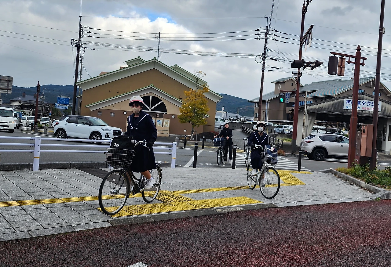 지도에 쓰여있던 시오타 중학교의 하교 시간이 됐는지 학생들이 하나 둘 몰려나오기 시작했다. 똑같은 교복에 흰 안전모를 쓰고 자전거를 타고 있었다. 건널목을 건너오며 맞은편에 서 있는 우리에게 고개를 끄덕하면서 “곤니치와”를 외치며 지나간다. 어떤 학생은 손까지 흔든다. 신호등이 바뀔 때마다 건너오며 인사하는 학생들을 향해 우리 역시 “곤니치와”를 외치느라 바빴다. 수줍은 표정으로 인사하는 학생들이 신기했다. 한꺼번에 여러 명의 인사를 받으니 환대를 받는 것처럼 기분이 좋았다.