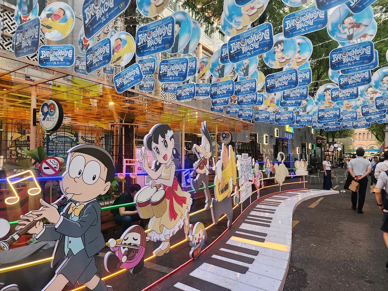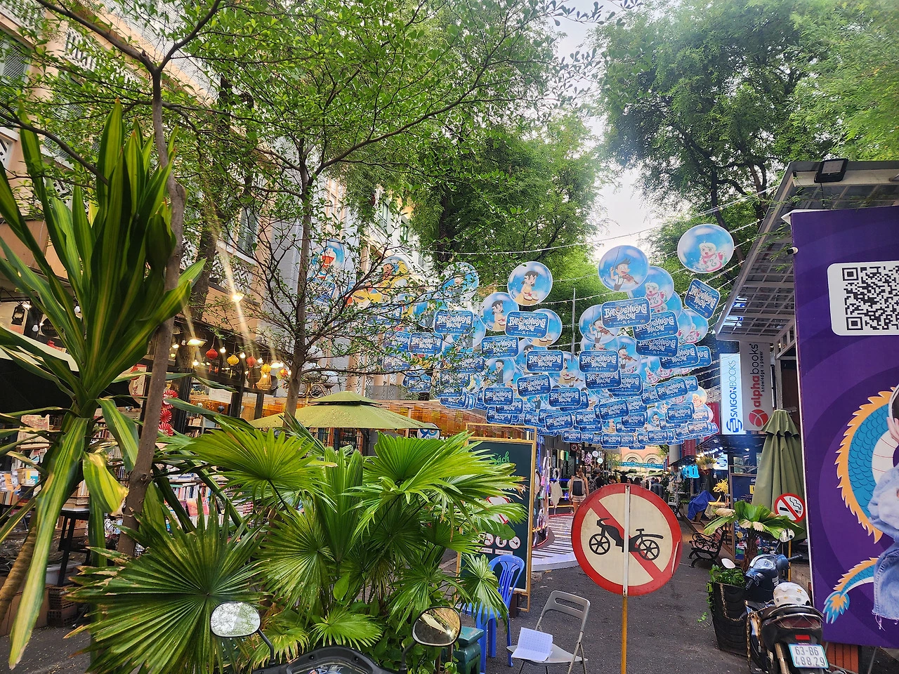 호찌민에 도착하자마자 호텔에 짐을 풀고 곧장 시내로 나갔다. 호찌민의 첫인상을 헤아리느라 간판과 건물들을 살피듯 보면서 느리게 느리게 거닐었다. 그러다 입구에 꽃밭을 꾸미고 초록 식물과 파라솔 사이로 책들이 가득 전시된 흥미로운 골목을 발견했다. 호찌민시티 북 스트리트. 시에서 정책적으로 조성한 거리로 베트남의 흔한 교통수단인 오토바이도 금지하고 오롯이 걸어서만 다닐 수 있는 거리였다. 가끔 열리는 도서전이 아니고 아무 때나 책을 보러 올 수 있는 전용 거리가 있다는 게 부러웠다. 행사 중인지 바닥에 대형 피아노 건반이 설치돼 있어서 밟으면 음악 소리가 들렸다. 방문자를 반기는 음악인가? 아이처럼 신이 나서 건반을 밟으며 북스트리트로 들어섰다.