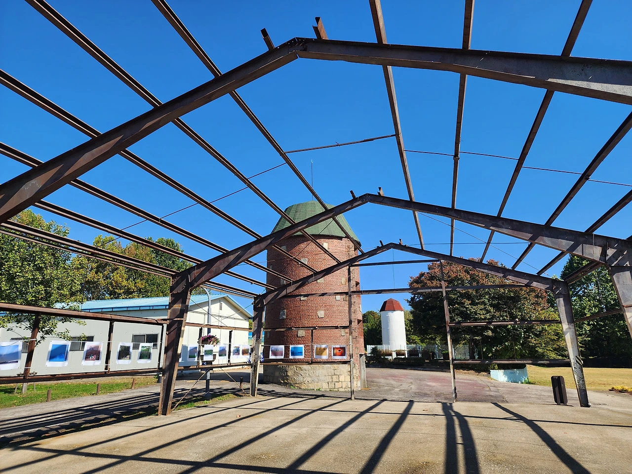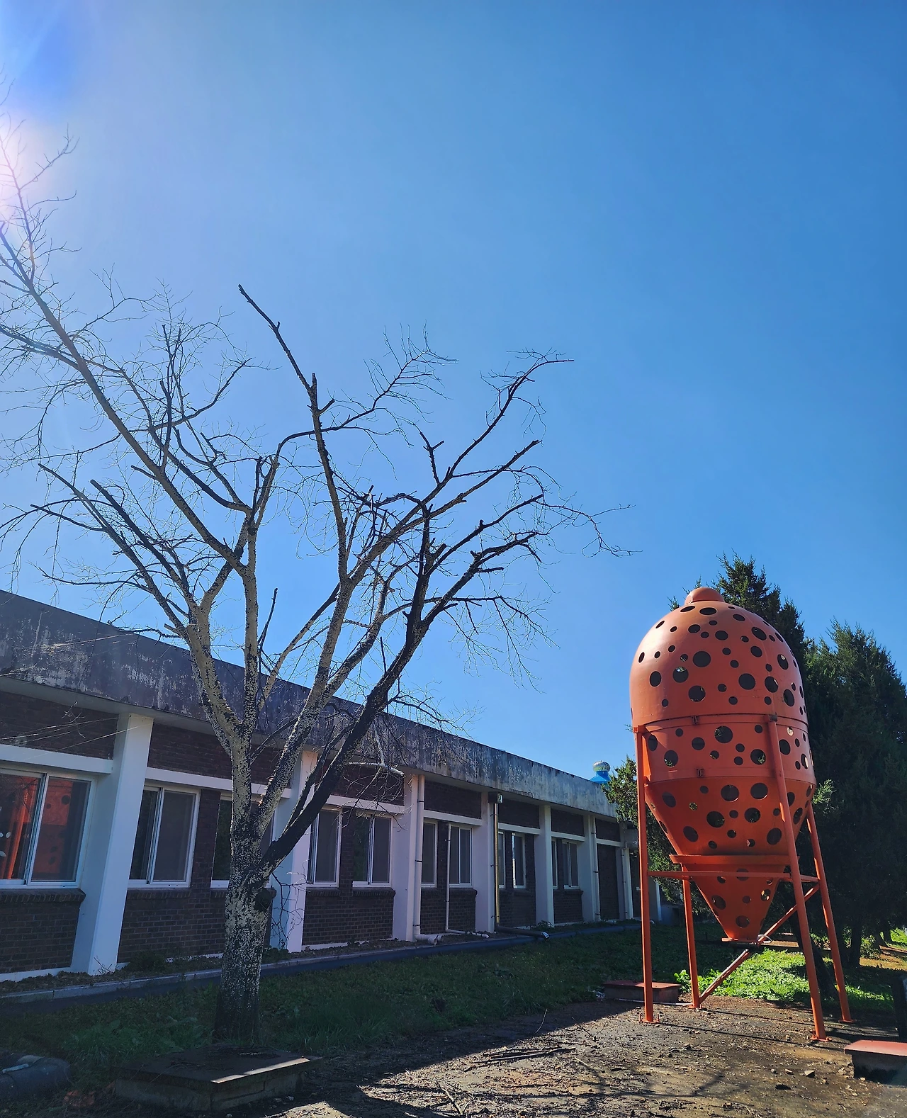 건물 주변에 ‘숲 속의 등대’라는 작품으로 변신하여 보존된 파란색 사료통과 ‘실험공간 G’라는 작품의 주황색 사료통이 보인다. 낡은 건물에 생기를 불어넣는다. 나의 시선도 따라서 반짝거린다. 외부에는 젖소 사육공간이던 유우사를 전시공간으로 활용했다. 모던해 보이는 철골 구조물 위로 보이는 파란 하늘이 도시 생활의 갑갑함을 시원하게 날려 보낸다.