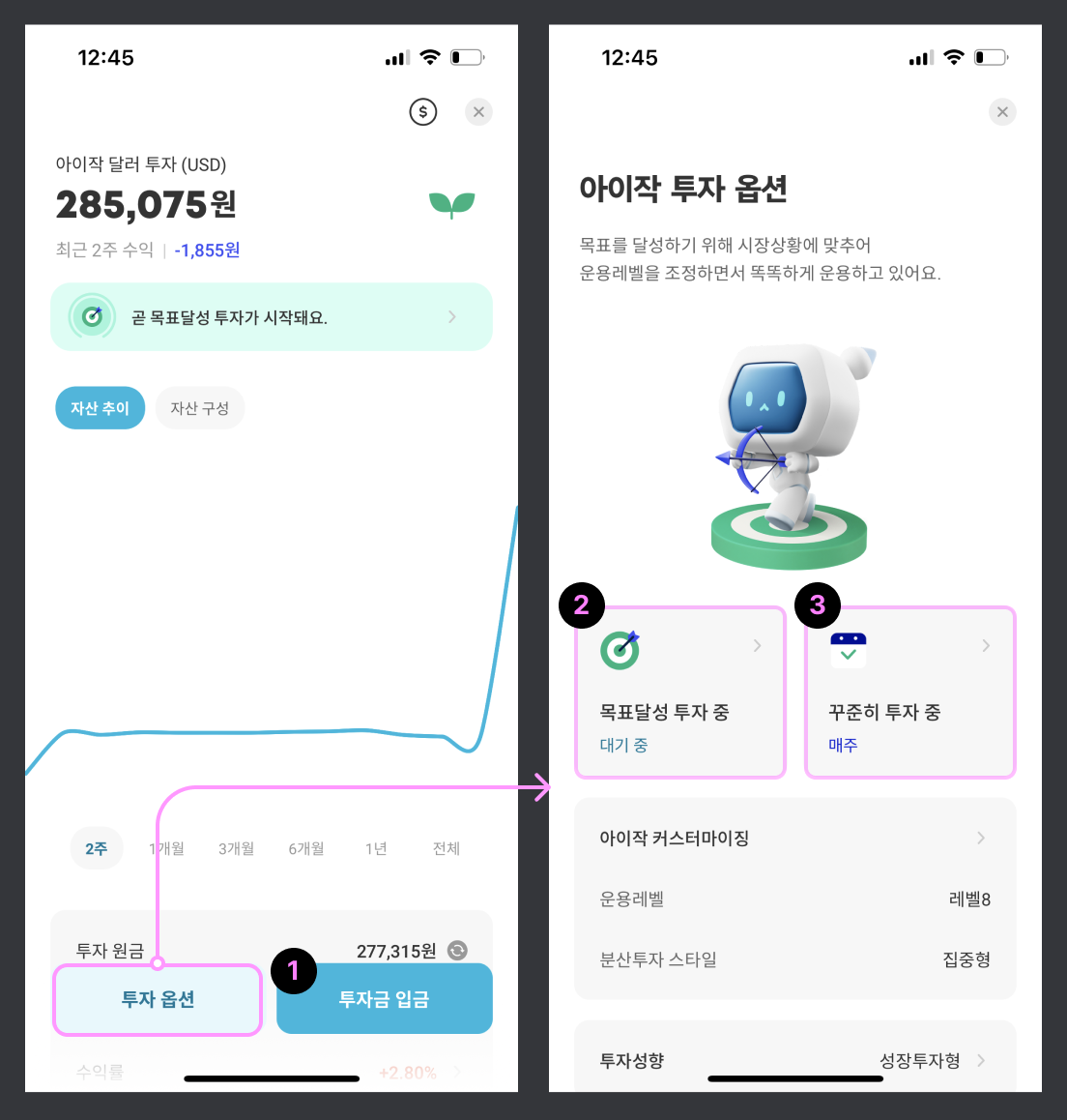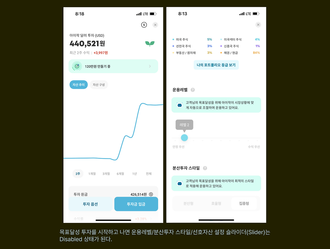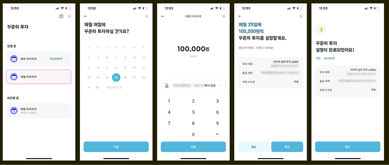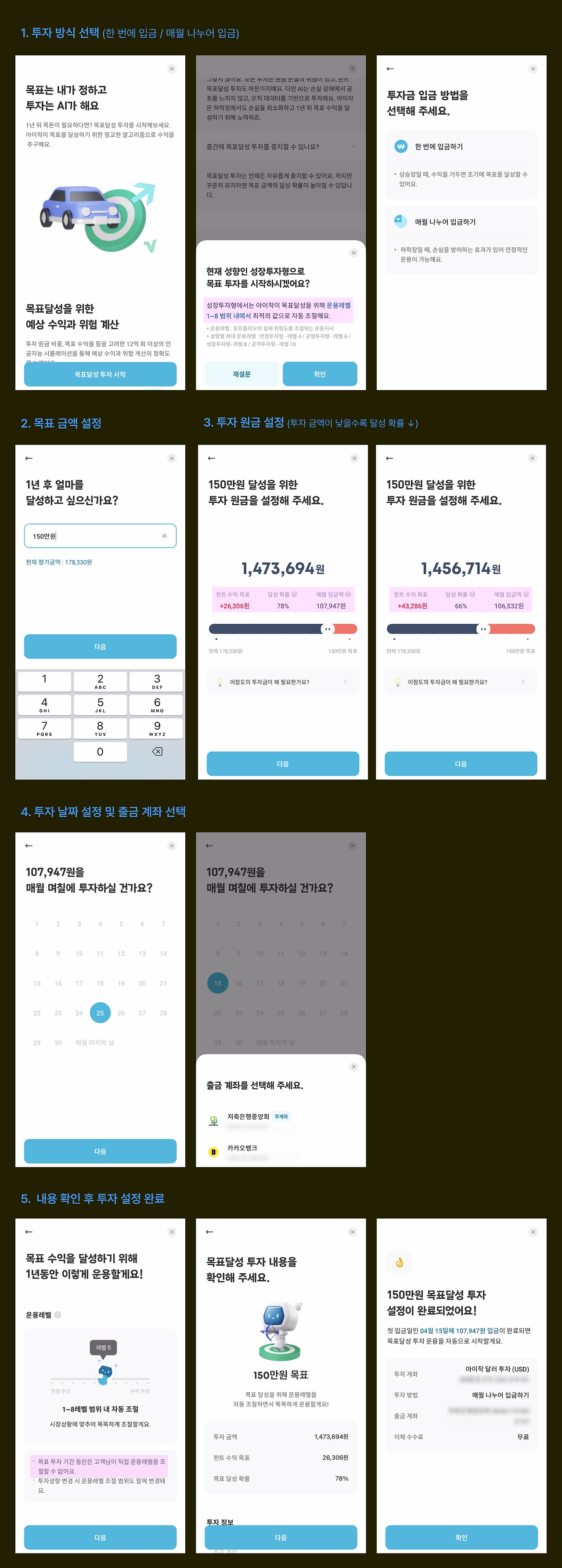 투자 설정 플로우 또한 군더더기 없이 깔끔했다.