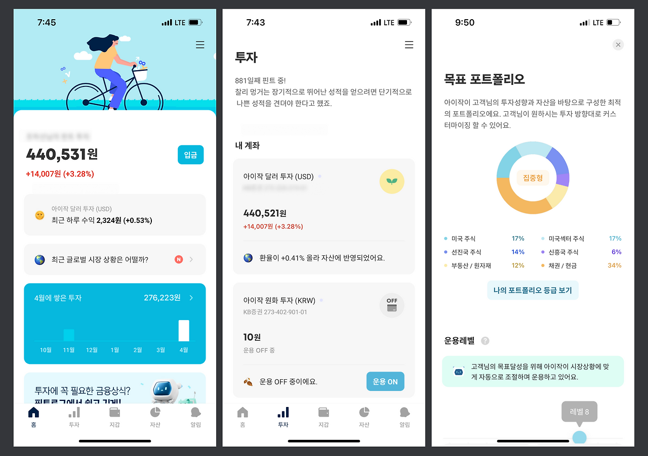 이때 나의 투자 성향에 따라 일정단계 이상으로는 운용 레벨을 올릴 수 없는데, 핀트는 이런 식의 안정장치 마련을 잘해둔 것 같다.