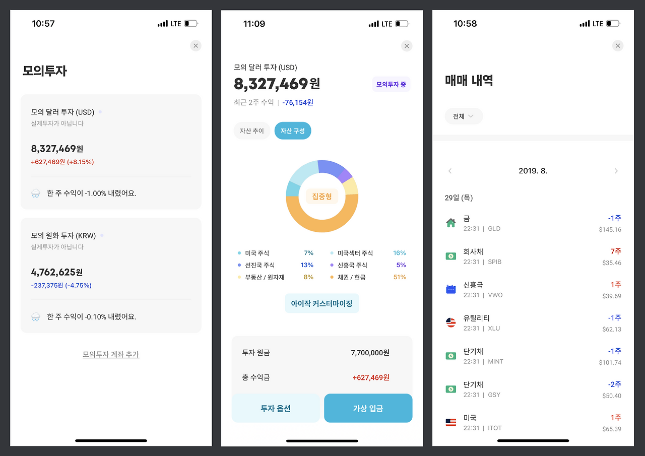 모의 투자를 통해 서비스 사용법과 어떤 식으로 자산이 운용되는지 대략 파악을 했다면,