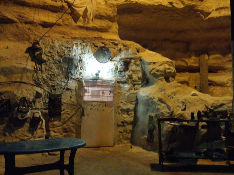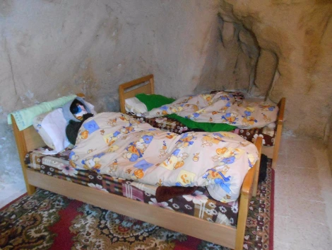 동굴 호텔이라기보다는 동굴 체험 장소라고 부르고 싶었다. 동굴 안에 카펫이 깔려 있고 침대만 덩그러니 놓여 있는 형국이었다. 혹시 시멘트로 만든 인공 동굴이 아닐까 살짝 의심했으나 벽을 만졌을 때 깊이 박힌 천연의 모래알이 사각사각 느껴지는 걸 보니 어김없는 천연 동굴이었다.