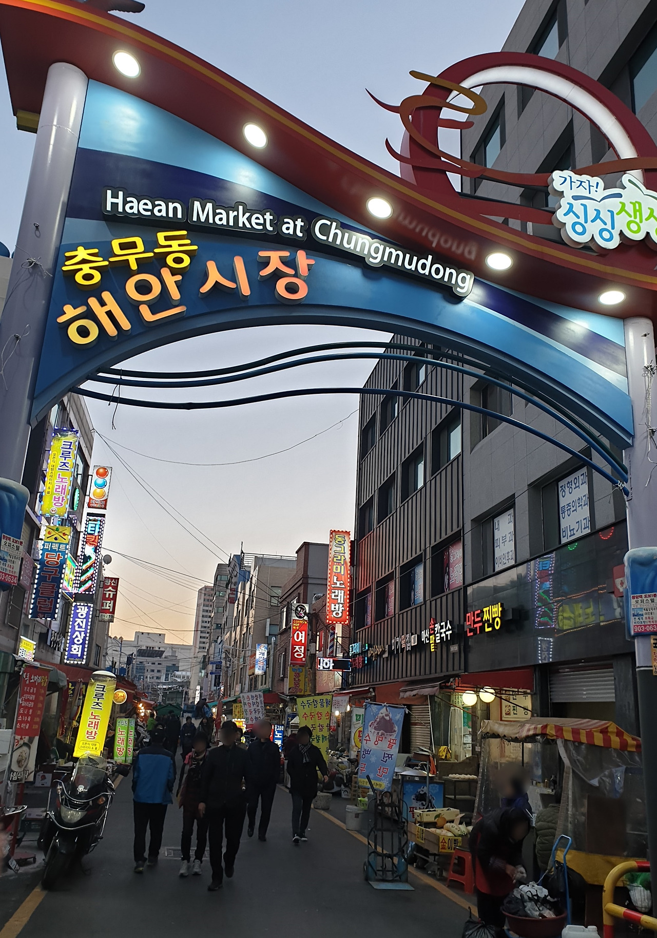 자갈치역 4번 출구로 나오면 큰길에 커다란 공영 주차장이 있는데요, 그 뒤쪽으로 걸어 들어가면 충무동 해안시장 입구 간판이 보여요.