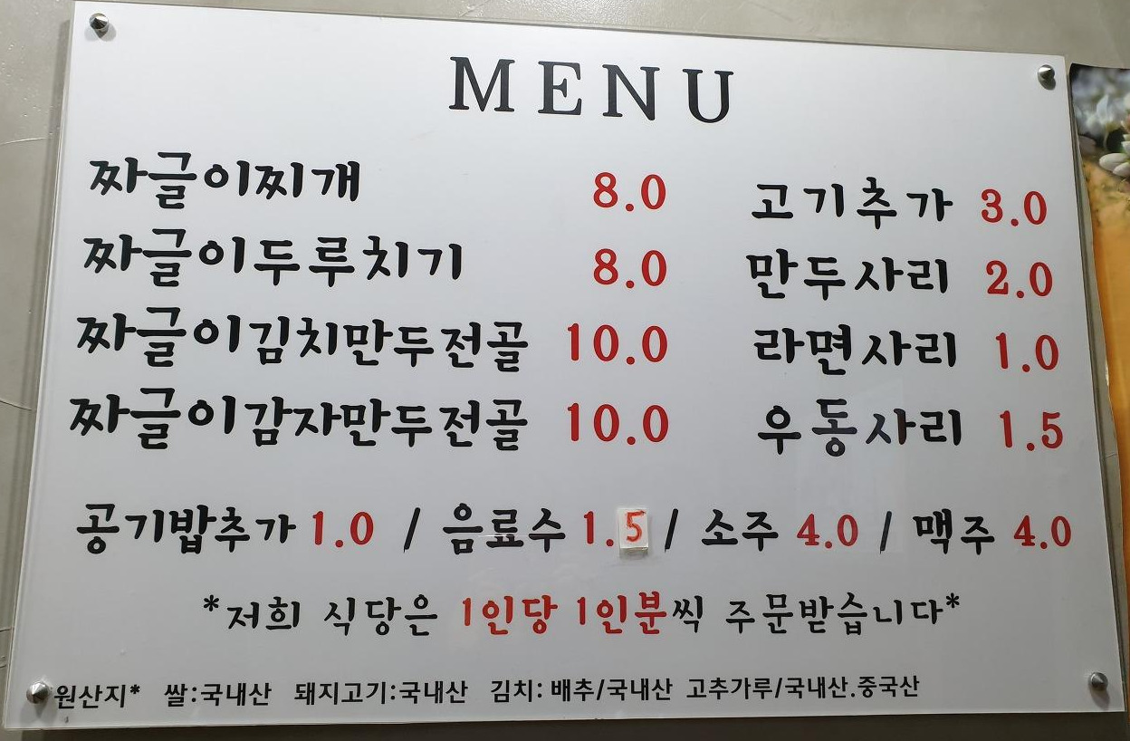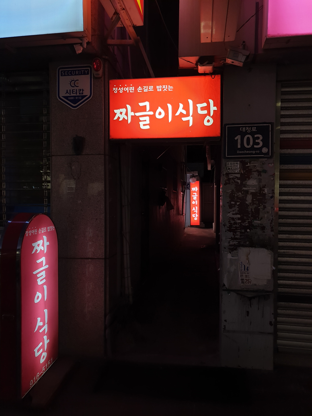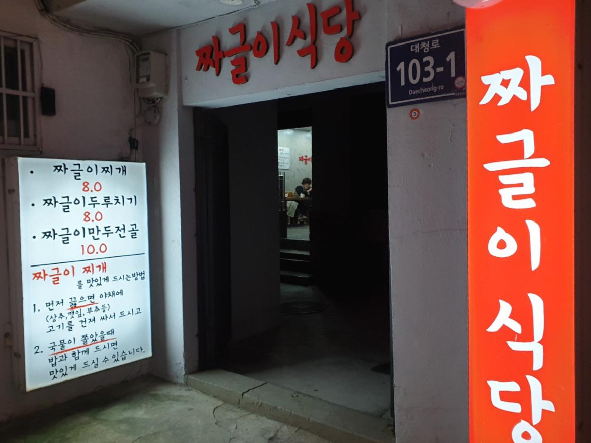 대청로를 걷다가 우연히 새빨간 간판의 '짜글이 식당'을 보았는데요, 처음에는 그냥 고만 고만한 오래된 밥집이 간판만 새롭게 바꾼 줄 알고 언제나 패스만 하고 들어갈 생각은 안 했지요.