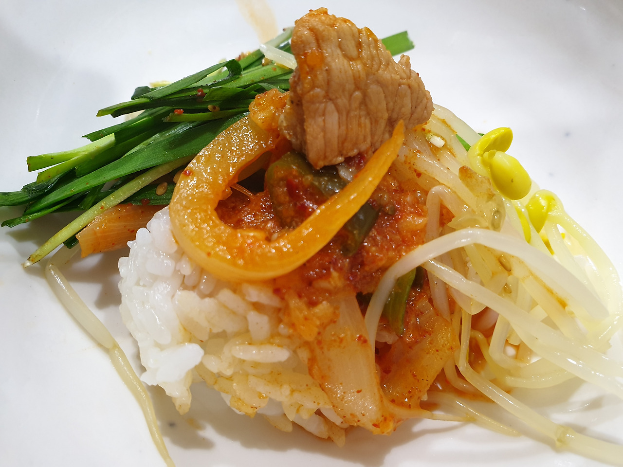 특히, 콩나물과 부추는 양념을 거의 쓰지 않아 삼삼하니 짜글이 찌개와 먹기에 딱 좋았습니다.