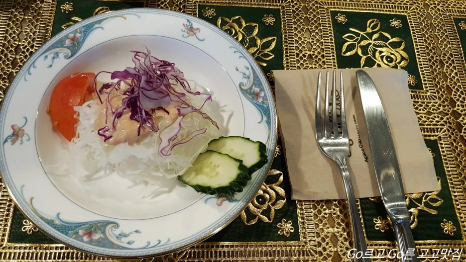 수프를 다 먹은 듯하면 서빙해주시는 분이 조심스럽게 그릇을 들고 가시고 샐러드를 가져다주십니다.