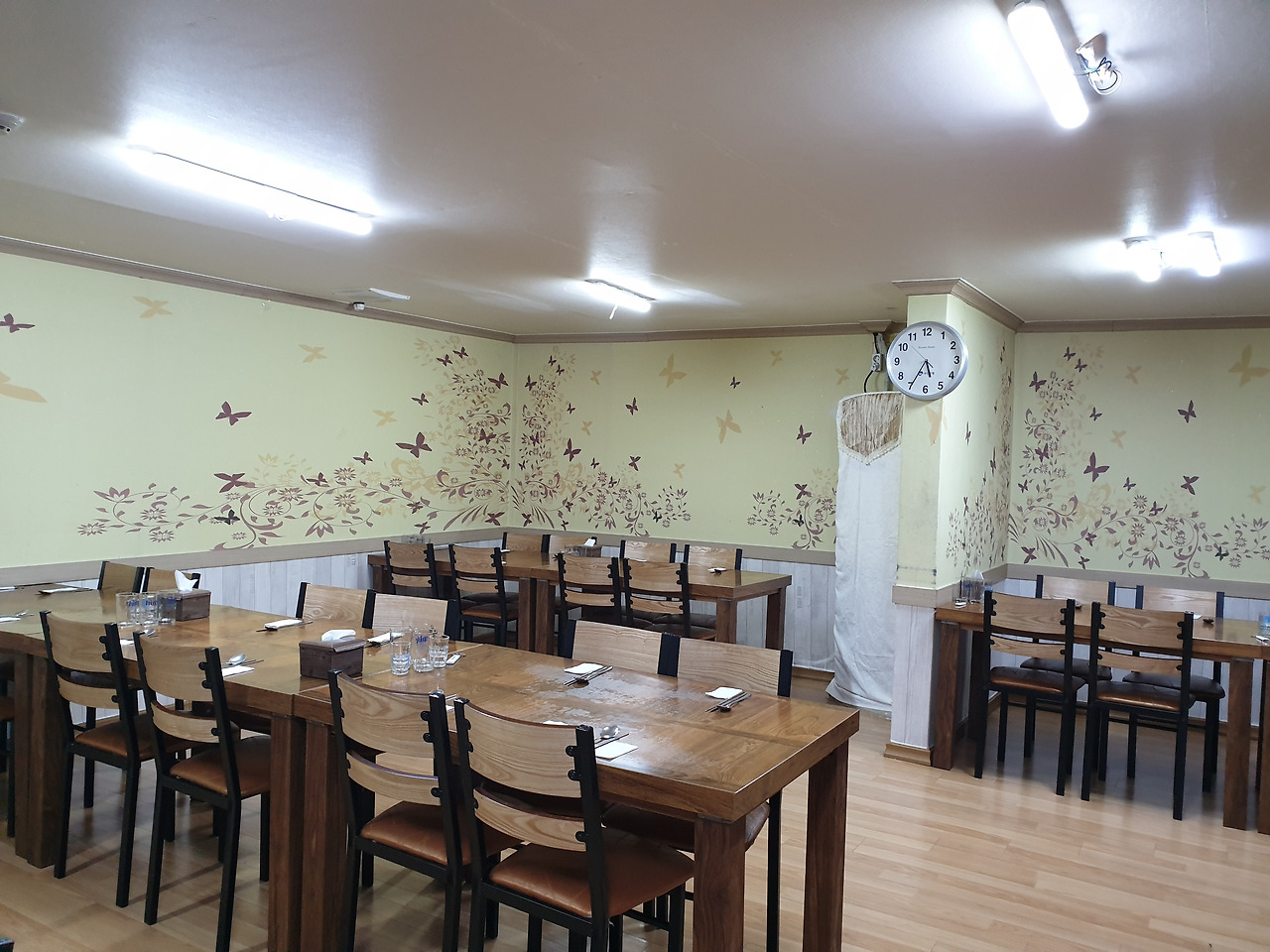 원래 방에 앉아서 먹는 좌식 테이블들이 놓여 있었는데요, 뜨끈한 방바닥에 앉아 쌈을 싸 먹었던 그때 그 기억이 새록새록 나네요.