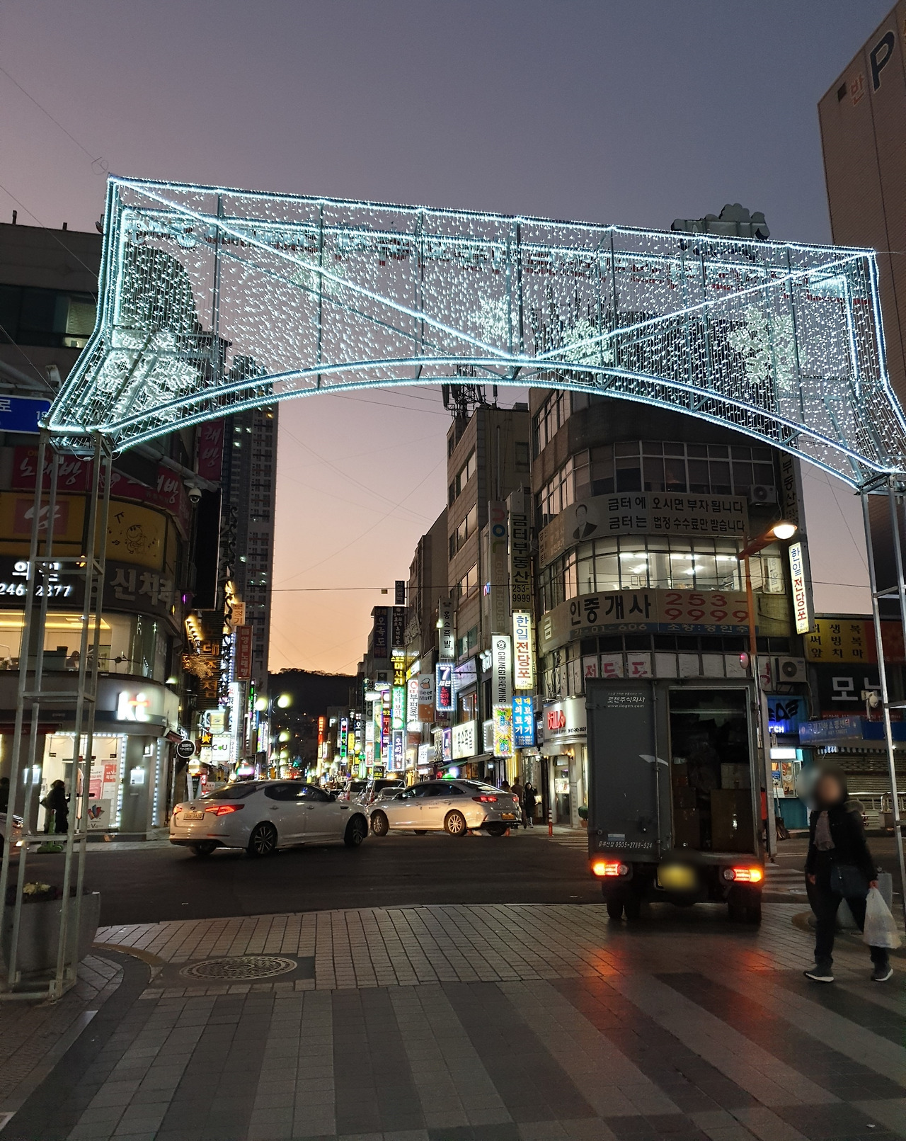 남포동 메인 거리인 12월 불빛 축제길을 쭉 걸어가시면 부평동 족발 골목과 연결됩니다.