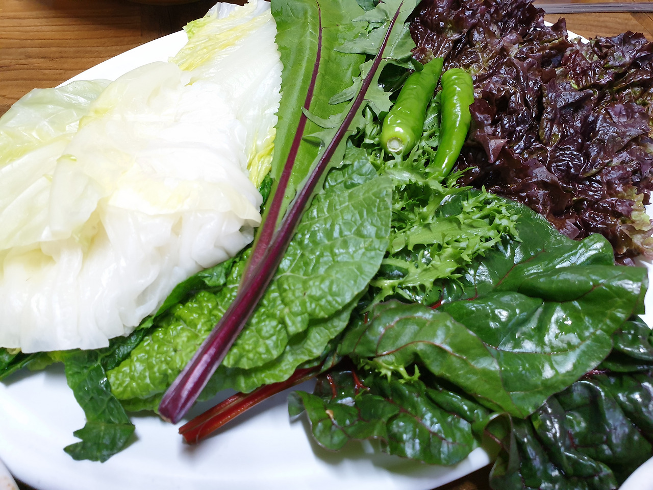 싱싱하고 풍성한 쌈 야채들은 두 말할 필요가 없습니다.