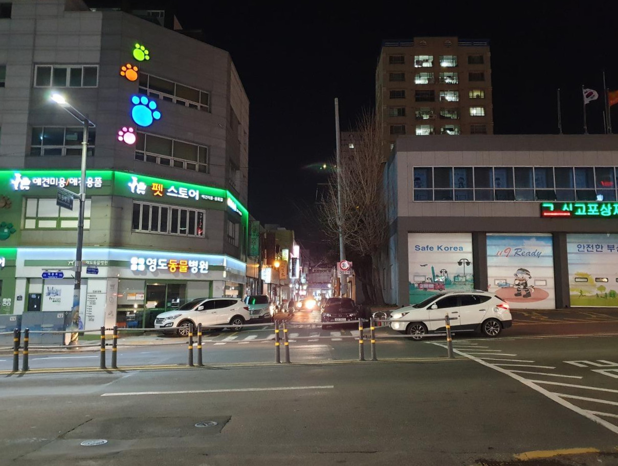 영도 다리를 건너서 태종대 방향으로 쭉 가면 영도 병원이 보이고, 다이소도 보이고, 하이마트도 보여요.