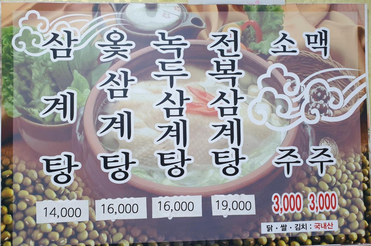 삼계탕이 기본이고요, 옻 삼계탕, 녹두 삼계탕, 전복 삼계탕! 딱 네 종류입니다.