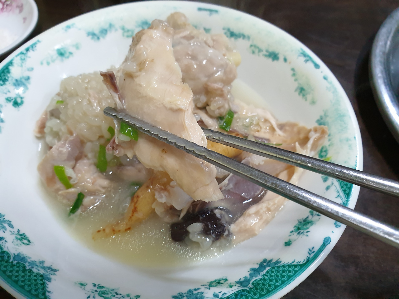 잠시 후 뜨거운 열기가 식으면 뽀얀 국물과 닭살이 본색을 드러내지요.