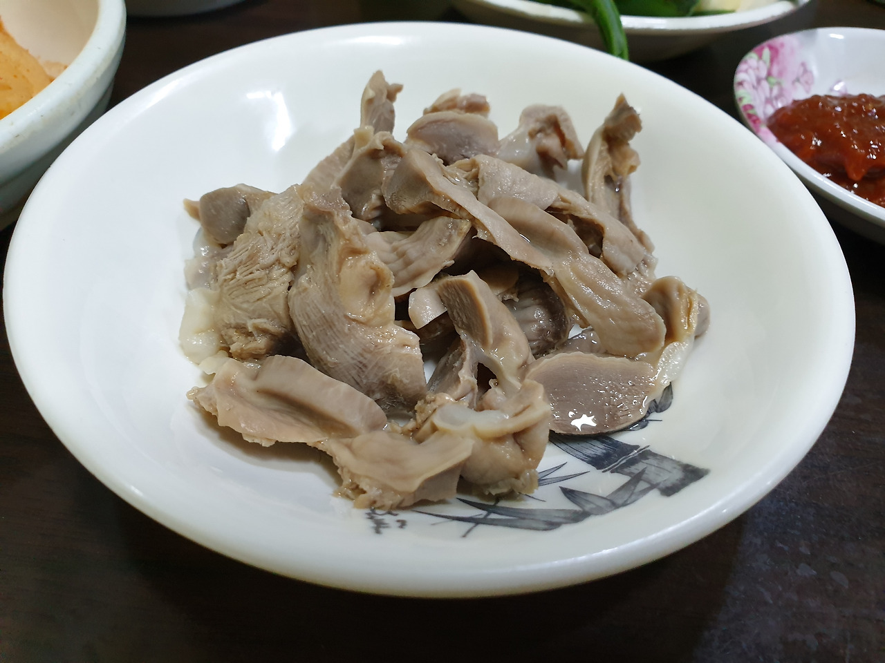 삶은 닭똥집이에요. 깔끔하면서 쫄깃한 맛에 접시가 금세 비더라고요.