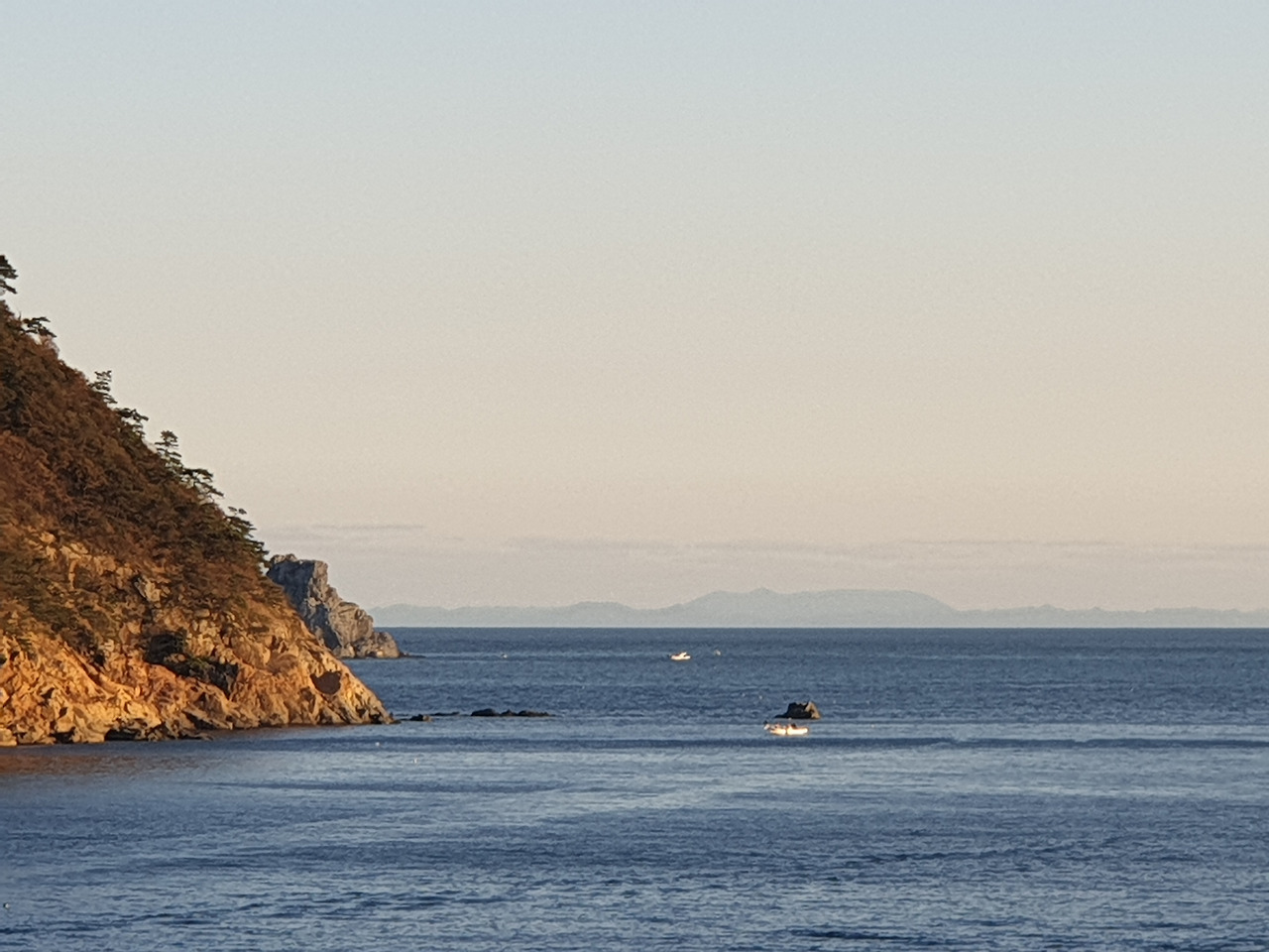 하지만요, 맑은 날에는 저 멀리 대마도를 볼 수도 있어요. 수평선 위로 넓게 펼쳐져 있는 섬이 대마도예요.