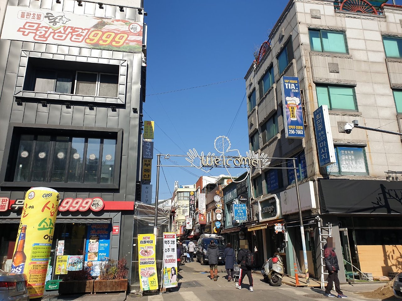 맞은편에 'Welcome' 간판이 보이거든요, 이 골목으로 들어가시면 됩니다.