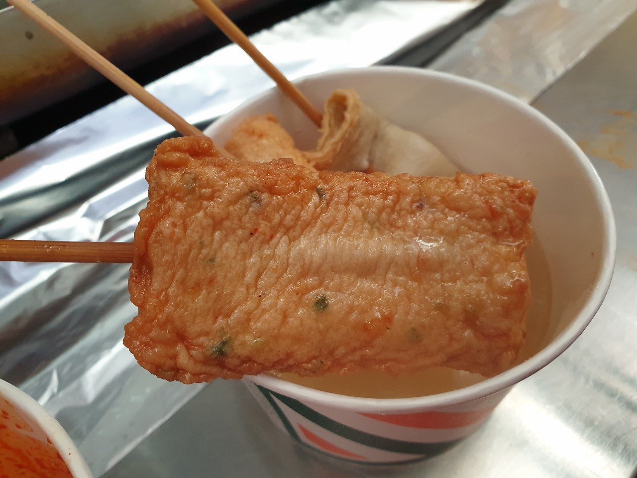 1인분(3,500원)을 주문하면 오뎅과 섞여서 나오고요, 먹기 좋게 가위로 싹둑싹둑 잘라 주세요.