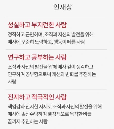 아래엔 인재상에 대한 정보가 부족했던 저비용 항공사와 관련되 기사를 하나 첨부해 두었다.