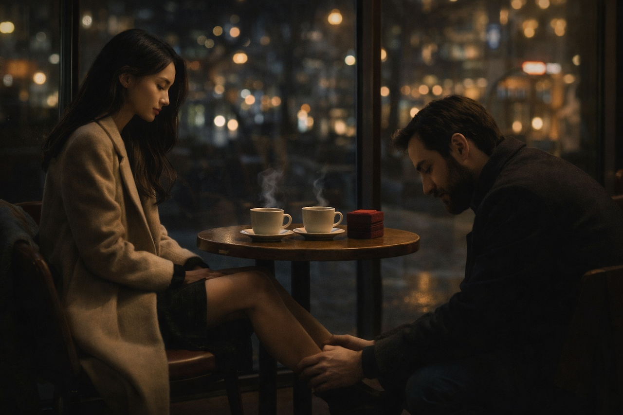 그가 갑자기 내 앞에 무릎을 꿇더니,