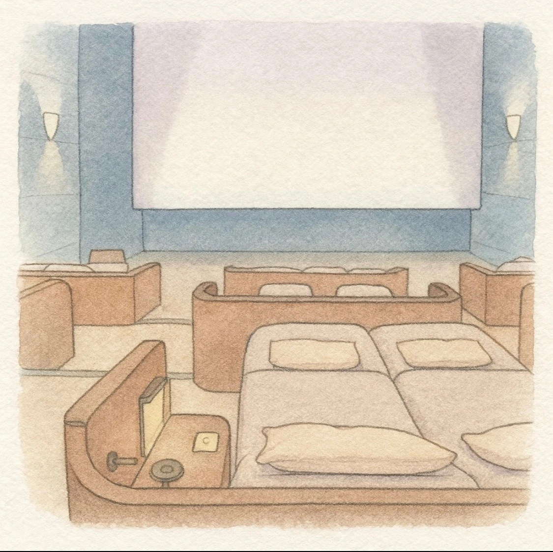 조용한 조명 아래, 우리는 나란히 누워 영화를 보기 시작했다. 화면의 빛이 천천히 어둠을 물들이고,