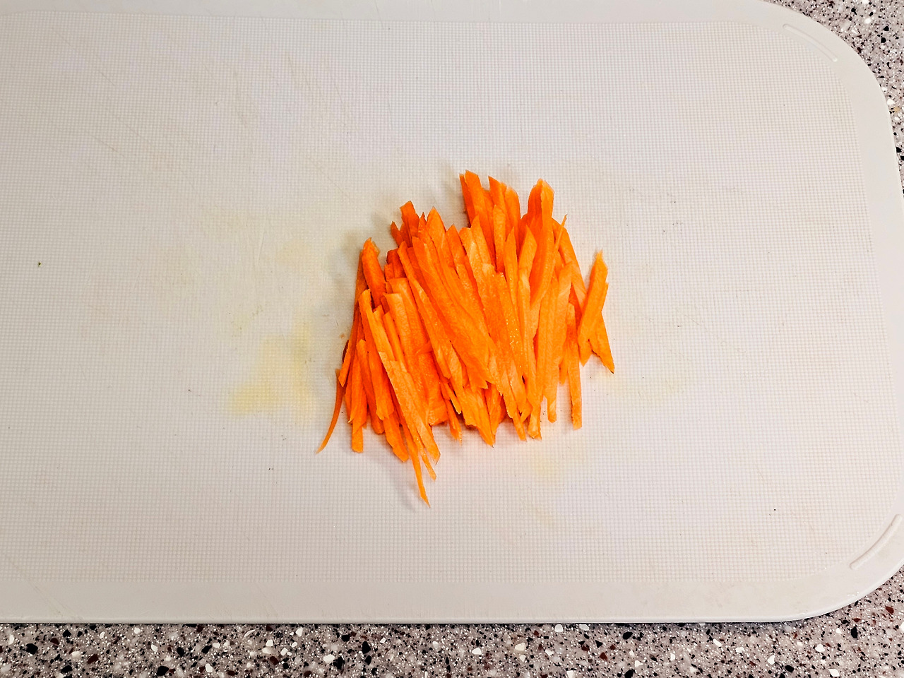 2. 모든 재료는 채 썰어서 준비해 주세요. 3~4mm 정도로 썰어주시면 돼요