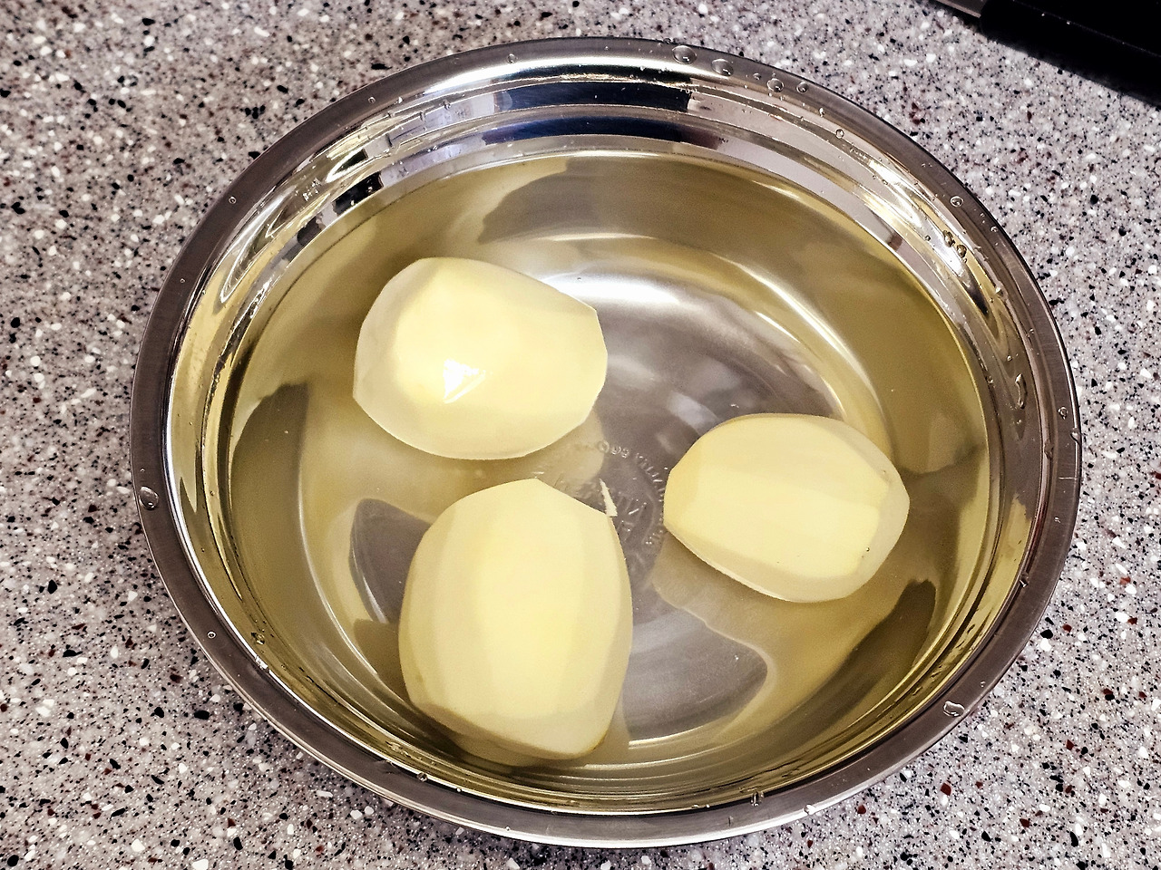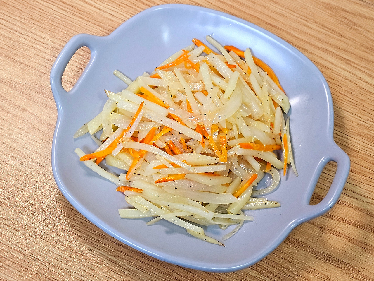 재료준비 : 감자 3개, 양파 반 개, 당근 40g 정도, 식용유 2스푼, 소금 1작은술, 후추 톡톡