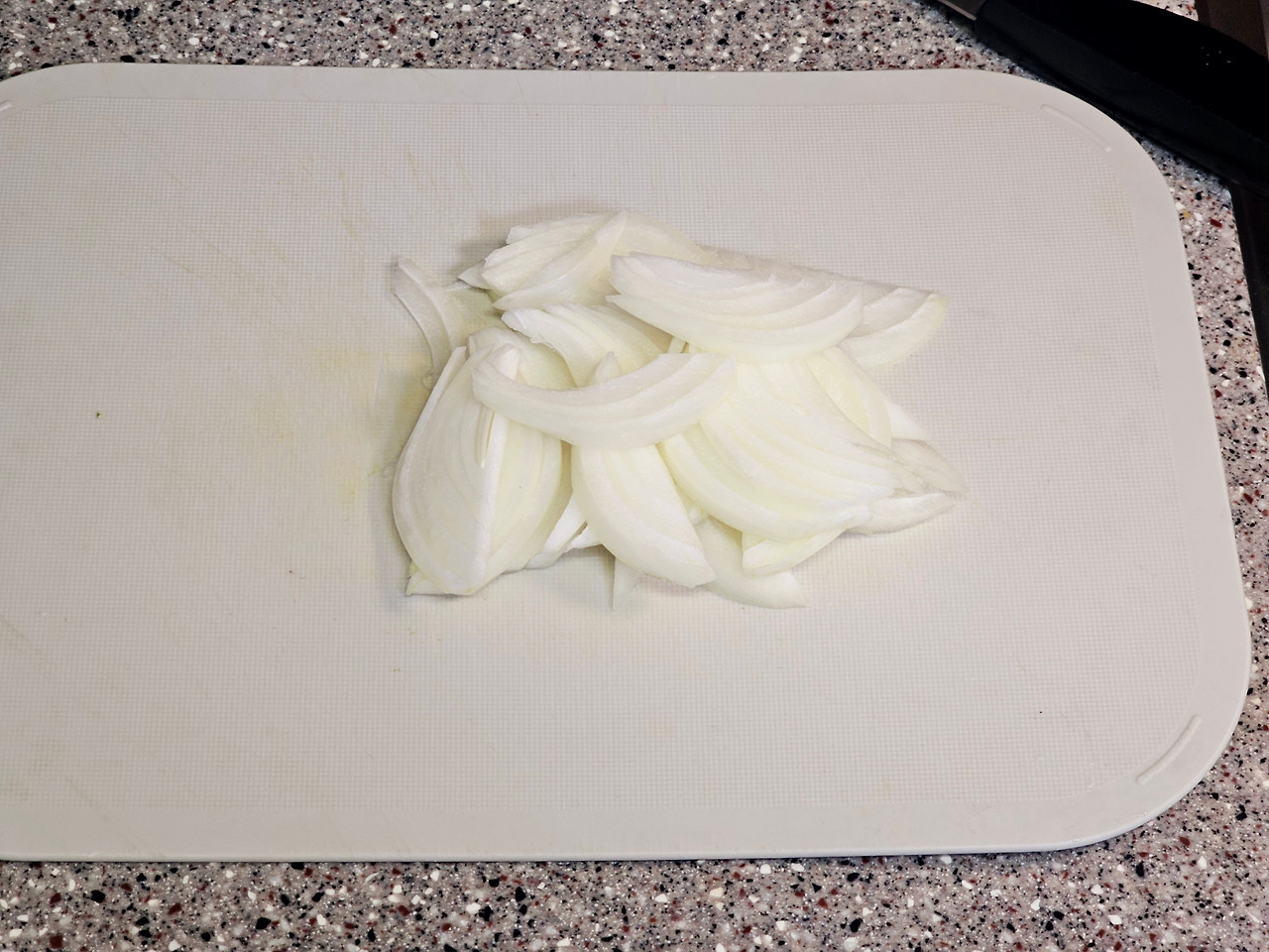 6. 양파를 넣고 30초 정도 볶아주시고요.