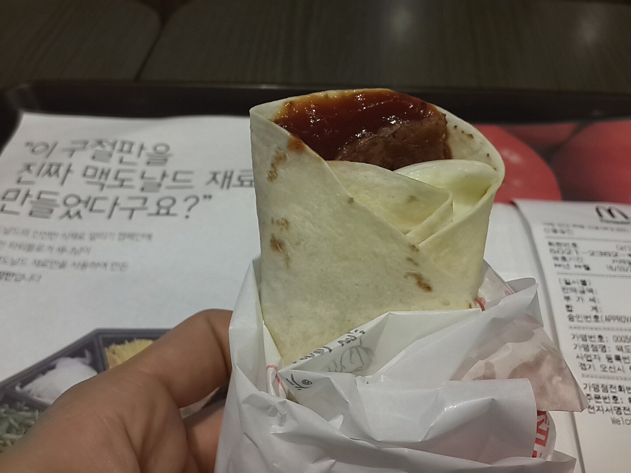 햄버거를 싫어하지는 않지만 즐겨 먹지 않기에 특히나 새벽 4시에 매일 먹어 볼 생각은 하지 못했다. '에그랩'은 먹어보니 부담이 되지 않아 아침식사용으로 괜찮았다.