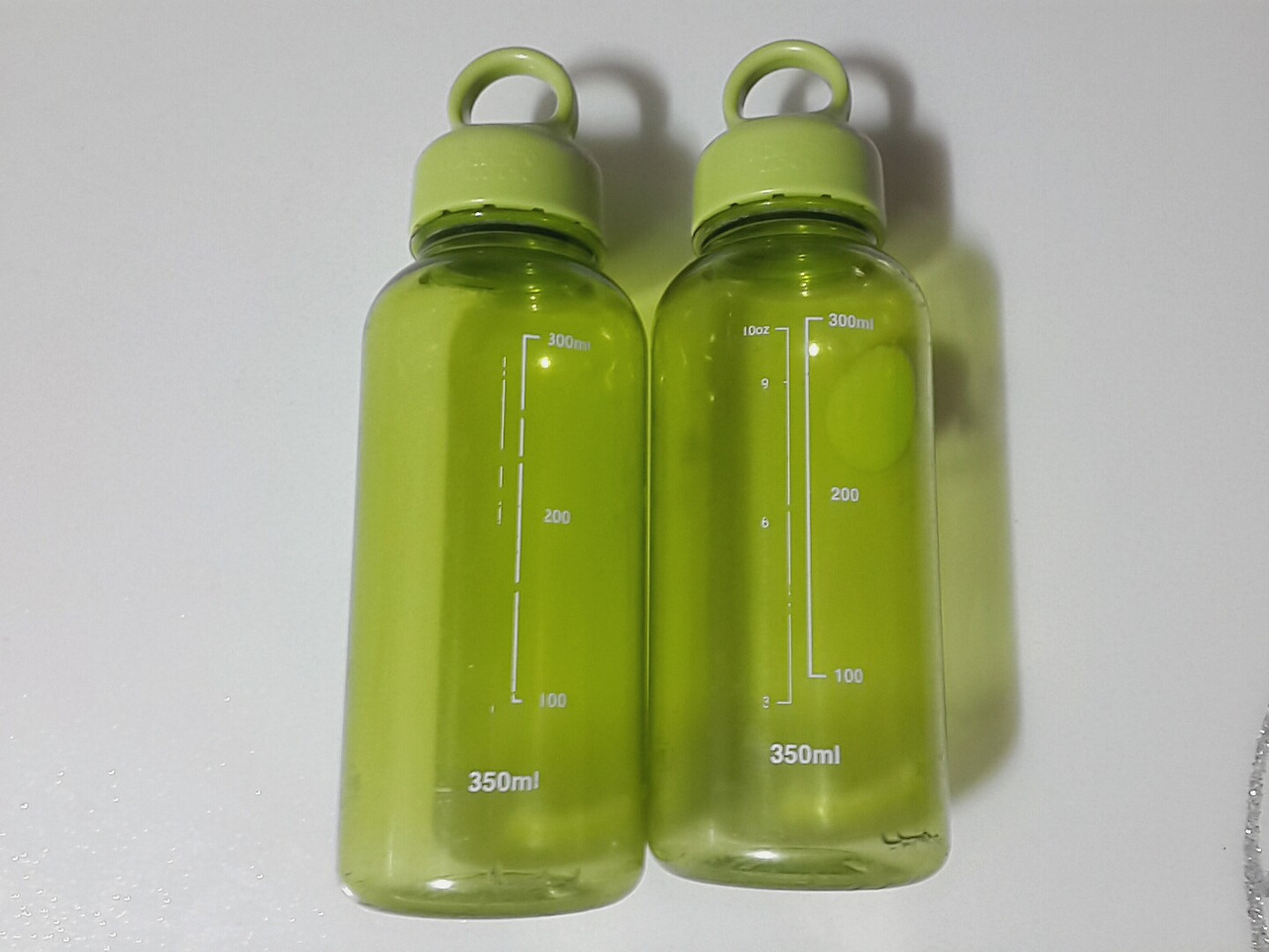 350ml 물병은 직전에 가지고 다녔던 물병이다. 원래는 3개 였는데 1개가 부서지는 바람에 2개만 남게 되었다. 물병도 오래되어 교체하는 계기가 되었다. 350ml 3개를 가지고 다녔던 이유는 물을 1리터 정도 먹는 것이 적당했다.