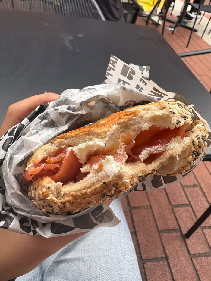 집에만 있으니까 너무 늘어져서 내가 좋아하는 장소인 The British Library에 갔다. 사실 인터뷰 뭘 준비해야하는지도 잘 모르겠지만 생각나는 것들 이것저것 해본다. 점심으로는 좀 걸어가서 지난번에 맛있게 먹었던 B Bagel에가서 에브리띵 베이글 + 연어 크림치즈 조합을 Take Away해서 도서관 앞에서 먹었다.