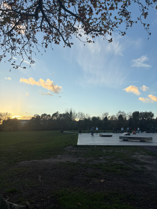 핀즈버리 파크에서 테니스를 치는데 배경으로 보이는 하늘과 햇빛, 금색의 나무들을 보면 테니스 칠때마다 행복하다!