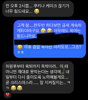 혼자 너무 고민하지 마시고, 어떤 게 힘든지 이야기해 주세요.