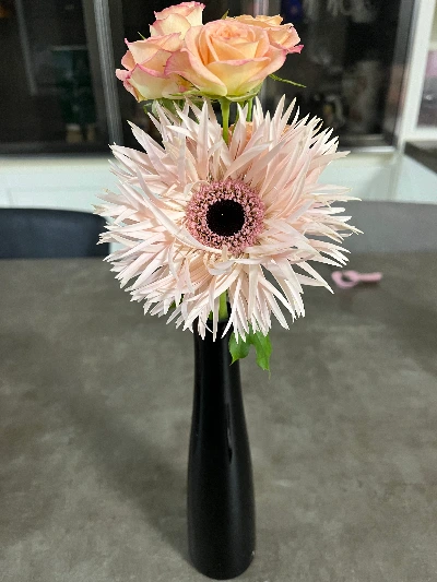 모니터 한번, 꽃 한번 보고 있습니다.