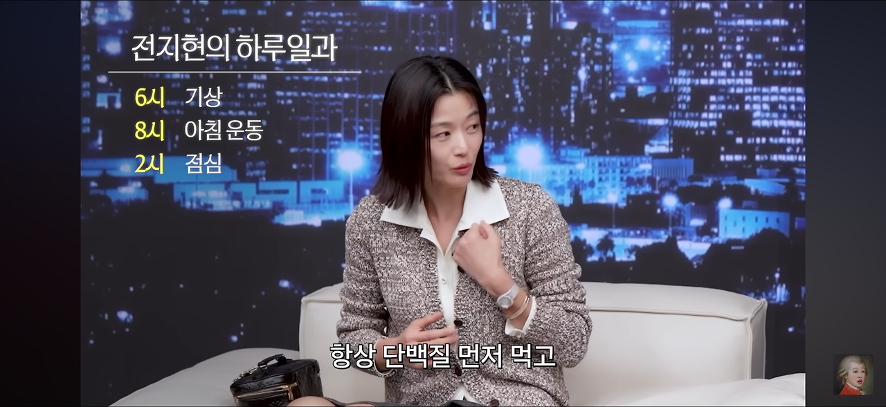 전지현은 “운동 후엔 단백질부터 먹어요.” 했다.
