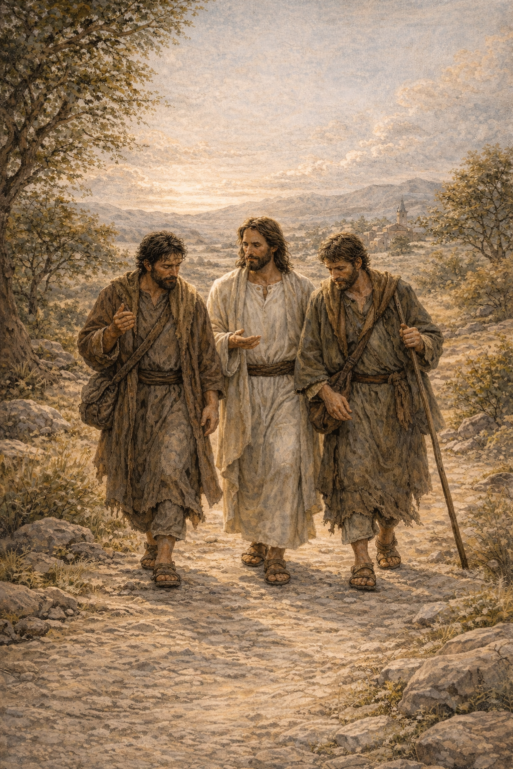 오늘은 부활하신 예수님께서 엠마오로 가는 두 제자와 동행하신 장면으로 시작하려고 합니다. 이 이야기는 13절부터 31절까지 이어지는데, 두 제자는 예수님의 십자가 처형이라는 충격적인 사건 이후 깊은 실망과 좌절 속에서 예루살렘을 떠나고 있었습니다. 그들이 기대했던 메시아, 이스라엘을 구원할 것이라 믿었던 분이 십자가에서 죽으셨습니다. 모든 희망이 무너진 것처럼 보였습니다. 그들은 슬픔에 잠겨 서로 이야기를 나누며 걸어가고 있었는데, 바로 그때 예수님께서 그들 곁에 다가오셔서 함께 걸으셨습니다. 흥미롭게도 그들은 예수님을 알아보지 못했습니다. 하지만 예수님은 그들의 슬픔을 외면하지 않으시고, 그들의 이야기를 들으시며, 성경을 풀어 설명해 주시고, 함께 식사하시다가 떡을 떼시는 순간 그들의 눈이 열려 비로소 예수님을 알아보게 됩니다. 그 순간 그들의 마음은 다시 뜨거워졌고, 절망은 희망으로 바뀌었습니다.
