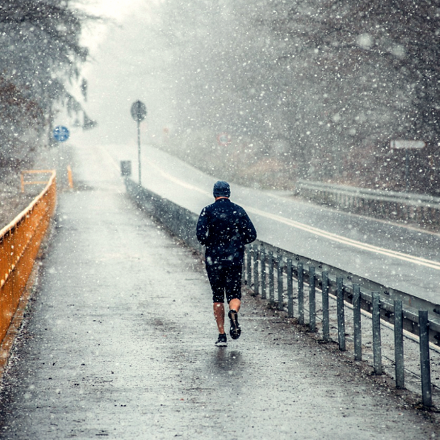 비 내리는 도로를 뛰는 사람은