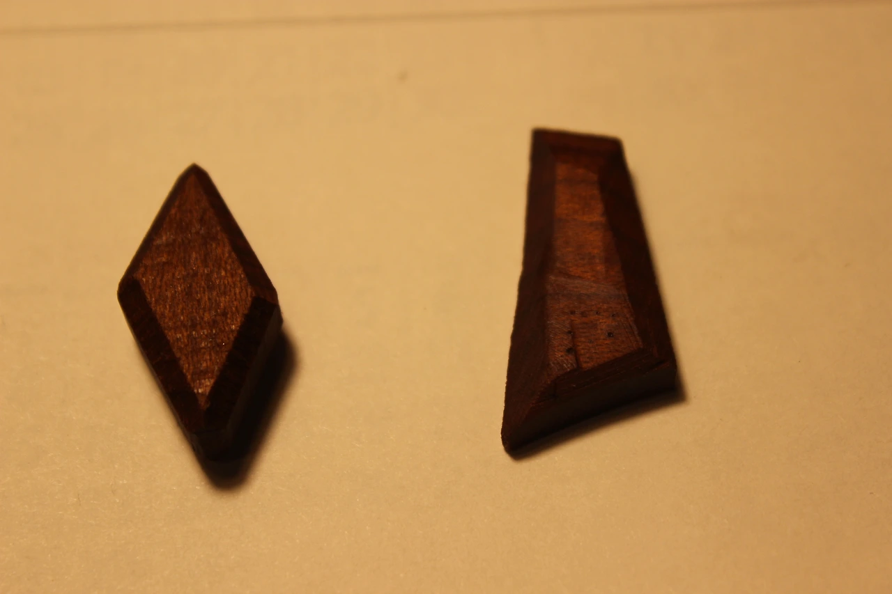 이런 식으로 손 가는 대로 만들어보면서 형태를 다듬었다. 구글링을 해봤을 때 대부분의 목재 키링이 단면에서 그친 게 아쉬웠다. 최대한 입체감을 주려고 했고, 그 과정에서 모서리 쪽을 많이 각을 치면서 발전시켰다.