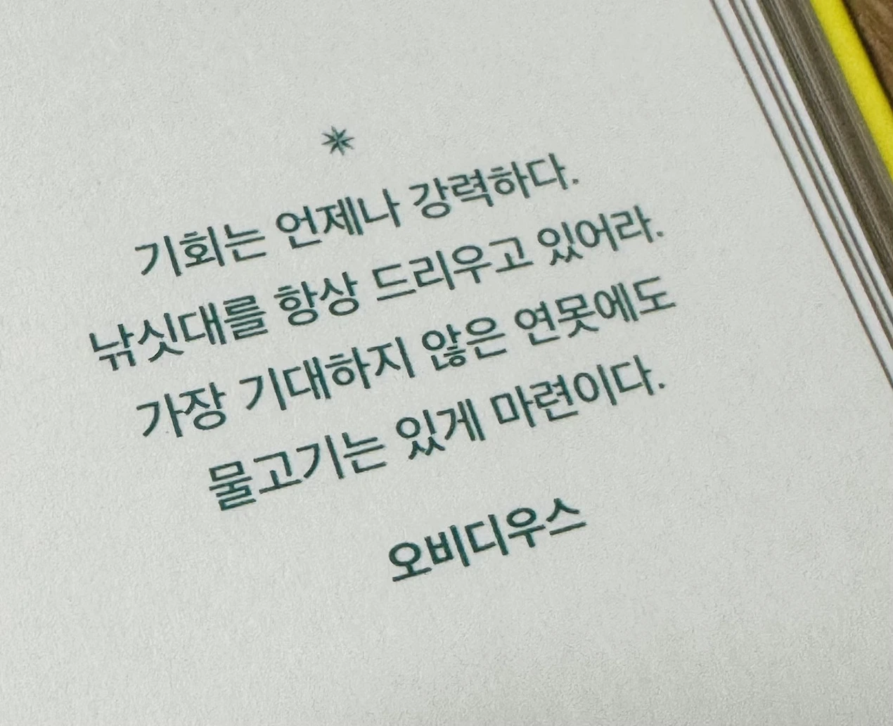 직장인의 유통기한은 정해져 있을지 모른다. 하지만 나의 가능성의 유통기한은 정해져 있지 않다. 내가 움직이는 한, 내 낚싯대는 언제든 기회를 끌어올릴 수 있다. 중요한 건, 두려움에 가만히 서 있는 것이 아니라, 오늘도 물 위에 낚싯대를 던지는 일이다.