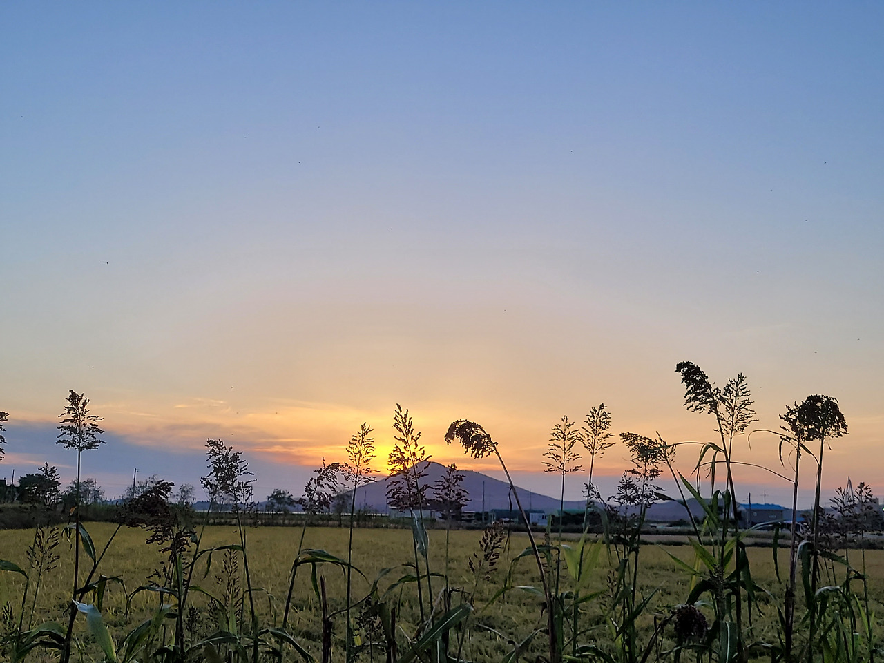 추수가 한창인 벌판 너머로 화려하게 펼쳐지는 아름다운 저녁노을은 잠시 내게 멈추어 보라고 속삭이고 있었다. 수로를 가로지르는 다리 위에 차를 세웠다. 그 아름다운 붉은색(황금색이 섞인)의 향연은 나 한 사람만을 위해 준비한 듯 아주 천천히 깔때기로 빨려 들어가듯 가라앉고 있었다. 공연히 마음이 묵직해진다. 눈시울도 살짝 뜨겁다. 저 노을은 다 알고 있다는 듯 너그럽고 자애롭게 옷자락을 펼쳐 보인다.
