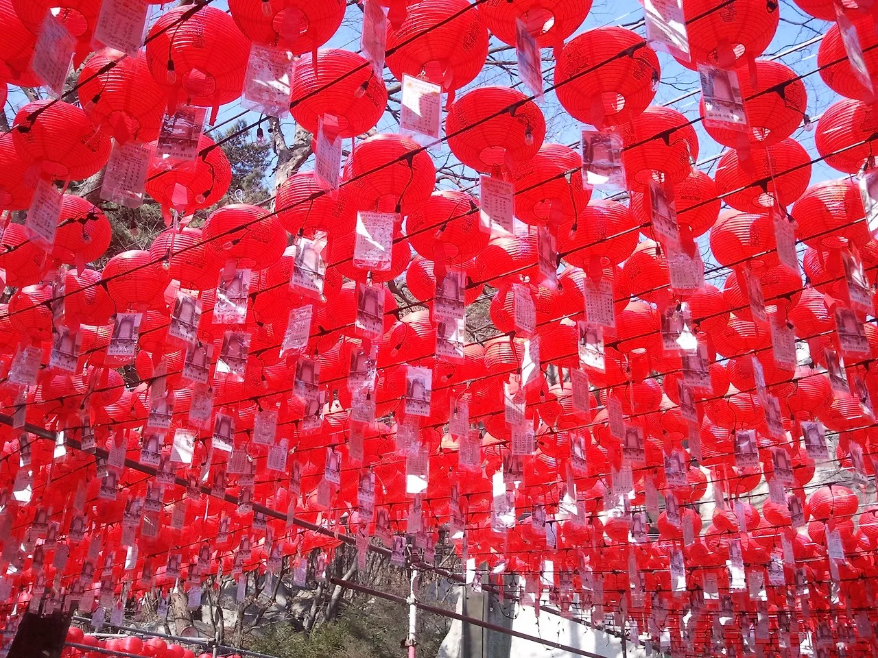 기와불사, 연등불사는 기본이다. 각종 절기에 맞춰 제사를 지낸다는 현수막이 걸려있고 불탑을 1만개나 세운다며 돈내고 복받으라고 권한다. 아예 대놓고 돈내면 자손대대로, 거기다 다음 생에서도 복받는다고 써놨다. 보문사 뒷편으로 마애석불로 올라가는 계단에는 초입부터 빽빽하게 걸린 연등이 계단이 끝날 때까지 이어진다. 마애석불 앞에는 금빛 찬란한, 십중팔구 훨씬 더 많은 돈을 냈을 황금색 연등이 줄줄이 사탕이다. 연등에는 하나같이 이름과 주소, 그리고 어떤 복을 원하는지 빼곡히게써 있다. 취업기원, 승진기원, 무병장수, 자손번성…