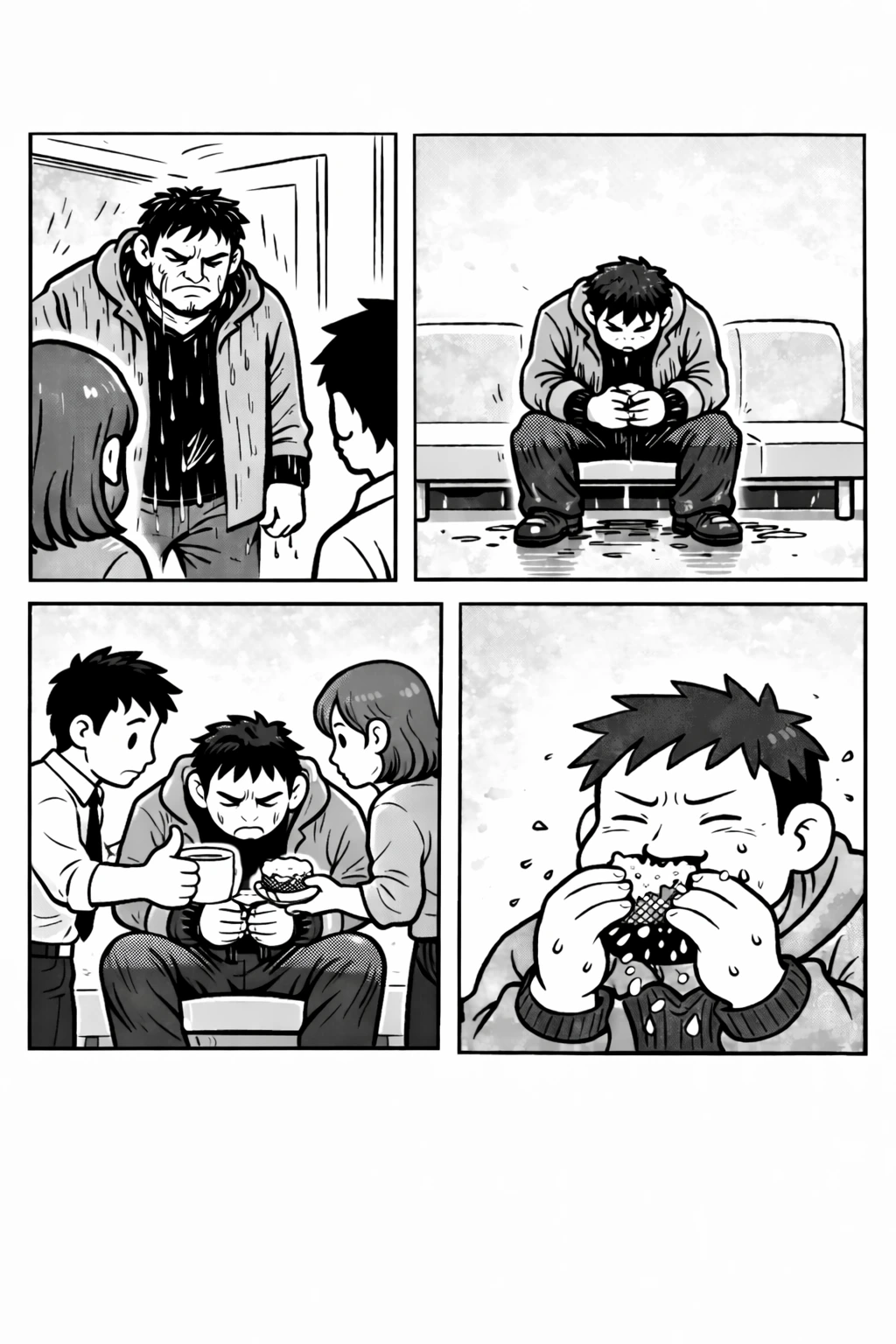 "저기.... 따뜻한 물 한 잔 드세요."