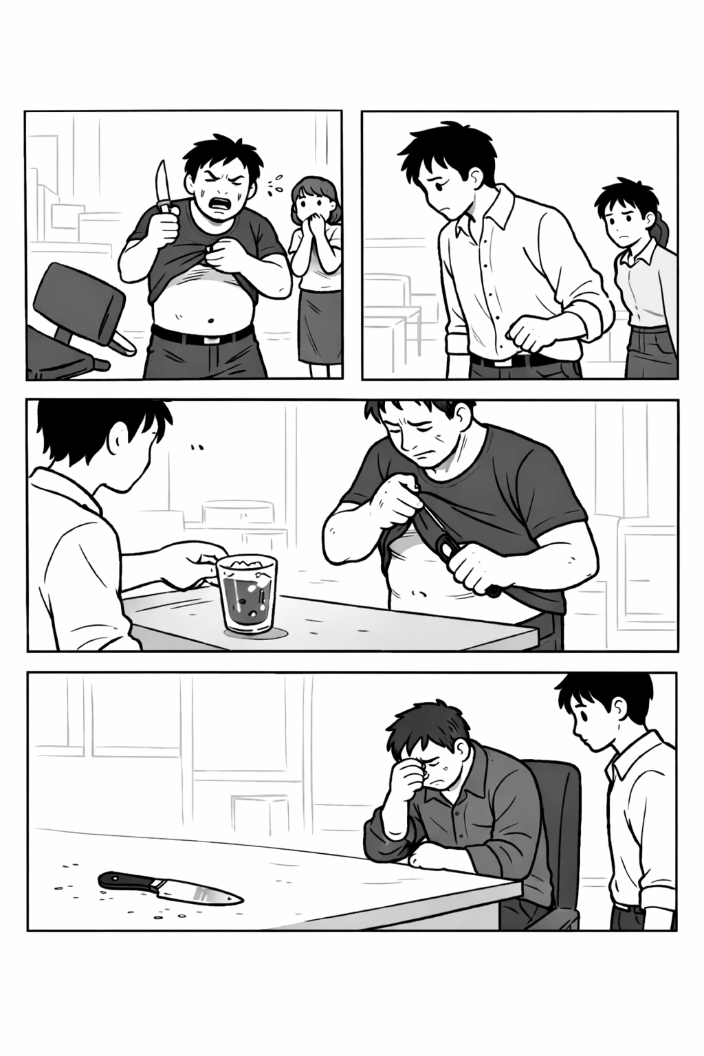 칼을 꺼내든 손님도 그대로 움직임을 멈췄다.