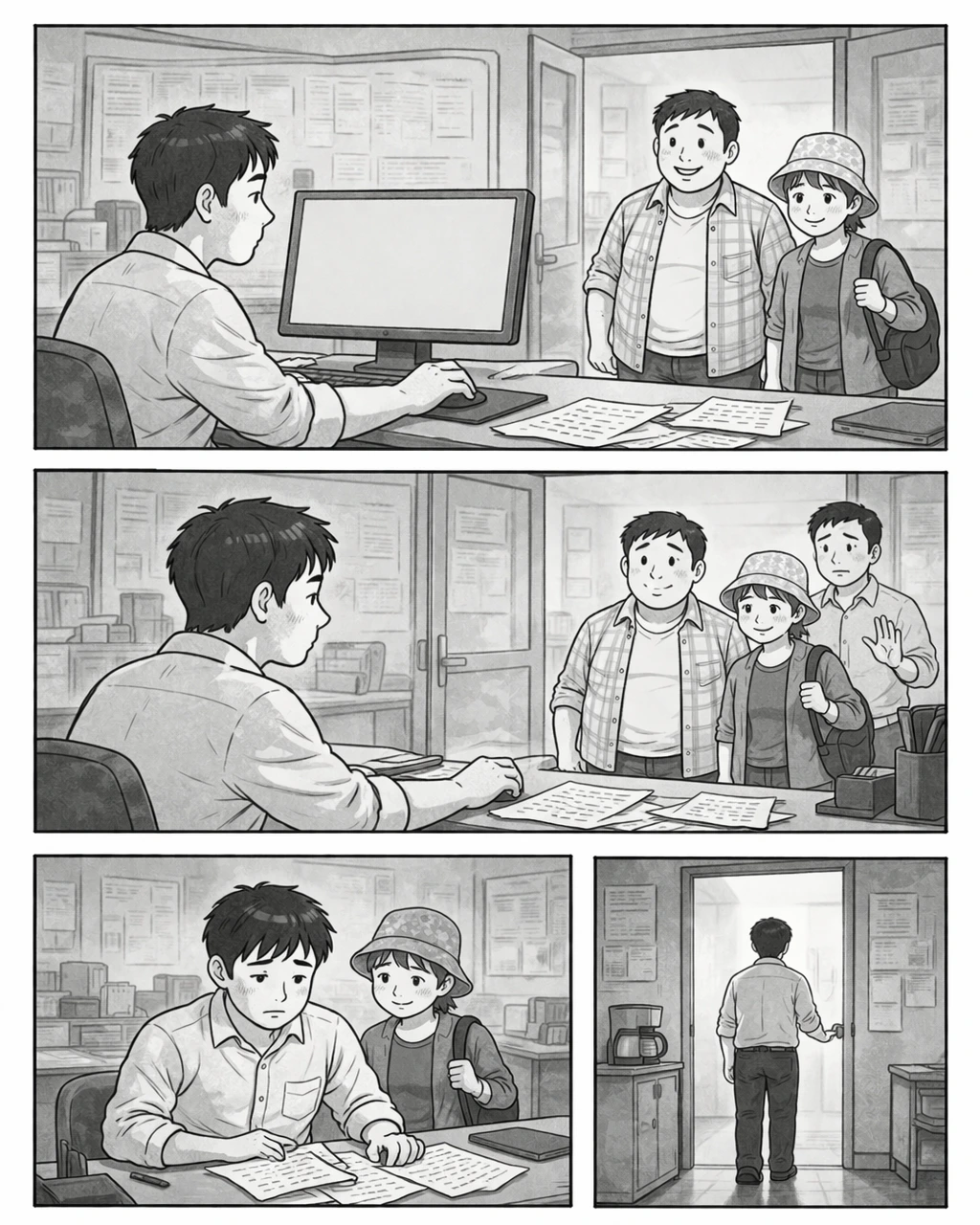 라면남과 그 엄마가 사무실에 찾아왔다.