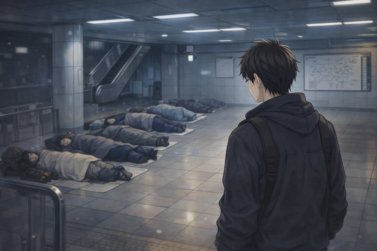 우선 본능적으로 따뜻한 곳을 찾아 헤맸다. 지하철 역으로 내려가자 허름한 차림의 사람들이 질서 정연하게 누워 있었다.