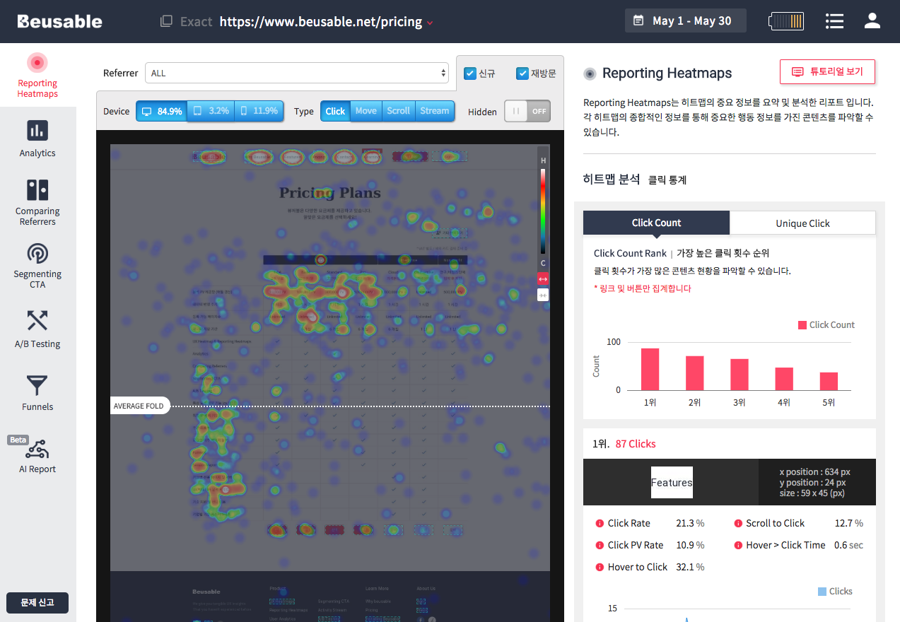 실제 웹 사이트 위에 UX 데이터를 시각화합니다 : 뷰저블리 홈페이지 (베타 기간 무료)