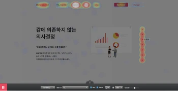 실제 웹 사이트 위에서 히트맵이 펼쳐지는 방식을 사용하는 일반 사용자가 보는 웹 사이트 화면처럼, 실시간으로 동적인 요소들을 체험하며, 콘텐츠 요소에 대한 분석을 진행할 수 있는 새로운 방식의 히트맵입니다.