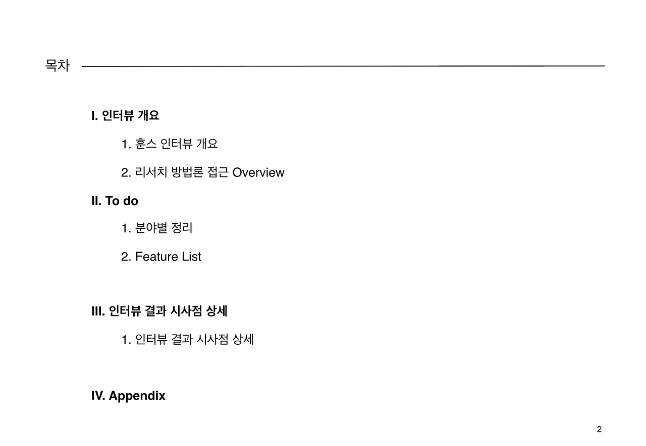 실제 인터뷰 내역은 다음과 같은 문서로 정리하여, 제품 및 사업 방향성 인사이트에 도움이 되도록 공유하고 있습니다.