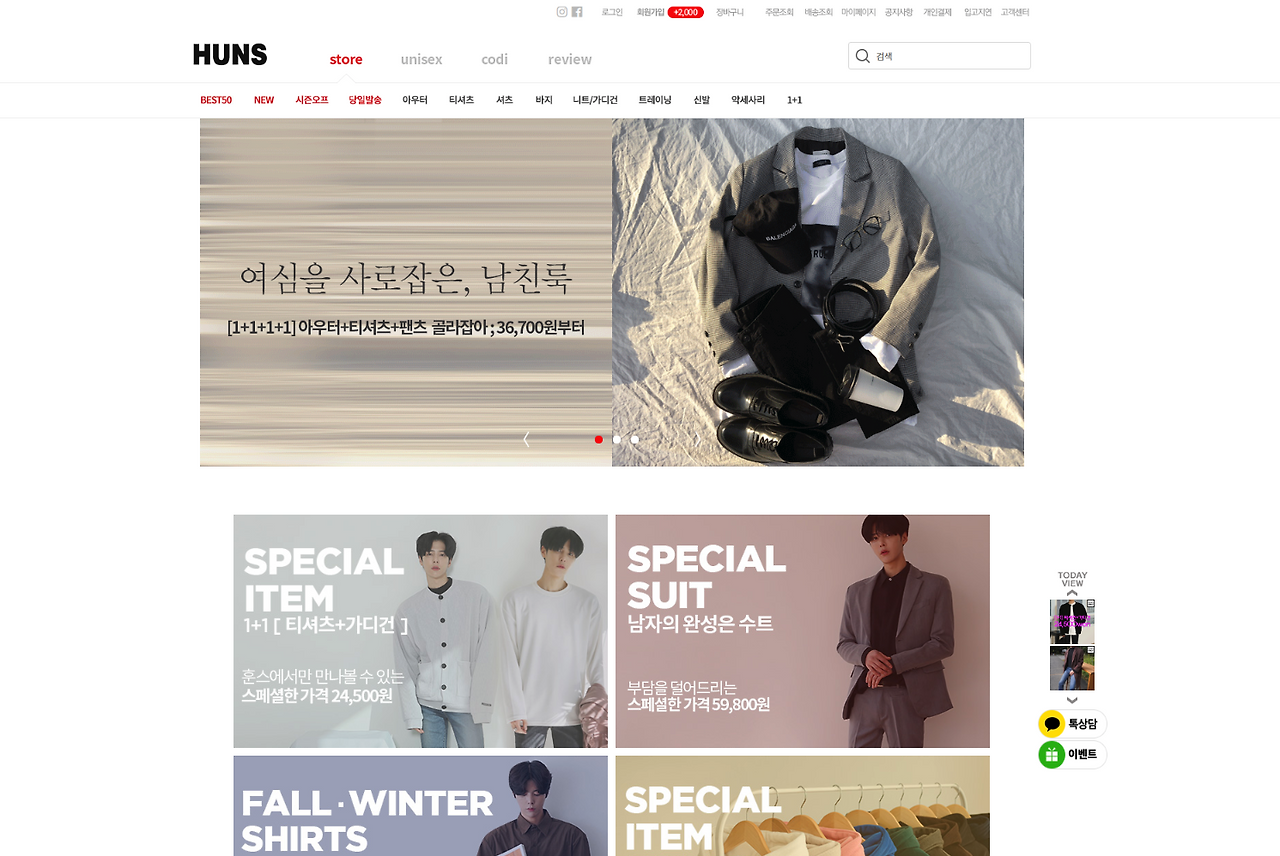 특히 훈스의 경우, 웹 사이트의 최적화를 중요하게 생각하는 쇼핑몰이라, 종종 UI 개편을 진행하는 편입니다.
