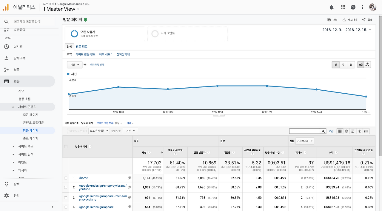 STEP 1. 구글 애널리틱스로 KPI (이탈률, UV 당 PV 수 등) 확인하기